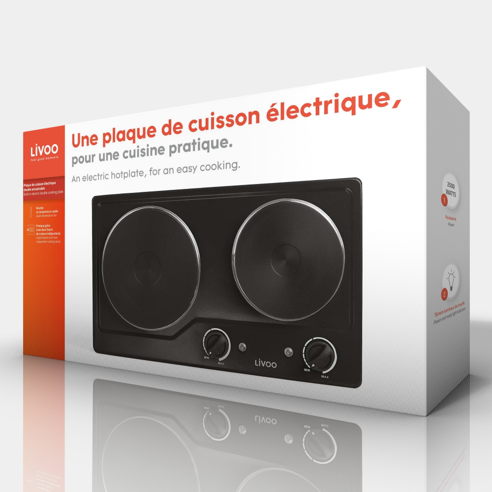 | DESIGNATION | LIVOO - PLAQUE DE CUISSON DOUBLE ENCASTRABLE NOIR 2500W - DOC168N |