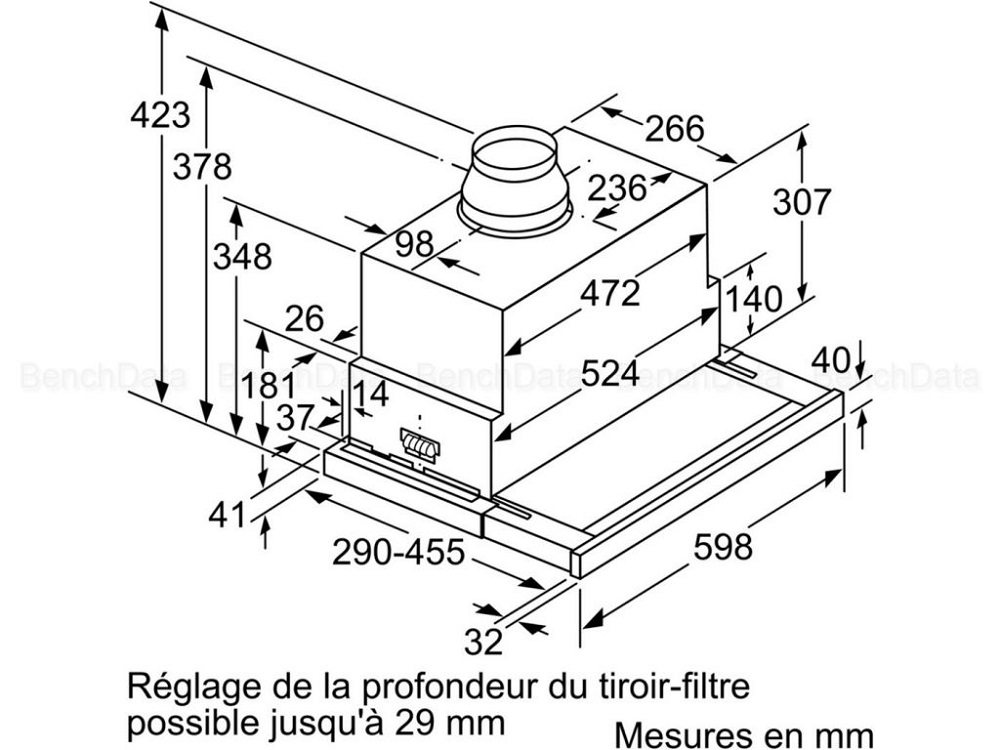 • Matériau du filtre à graisses : Inox résistant au lave-vaisselle