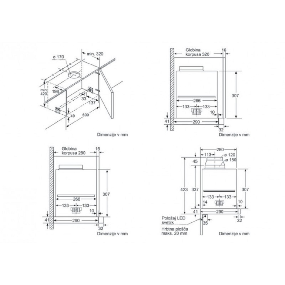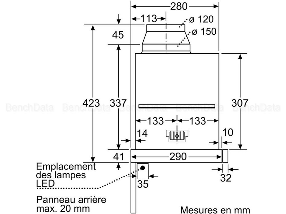 • Diamètre du réducteurd'évacuation d'air : 120 / 150